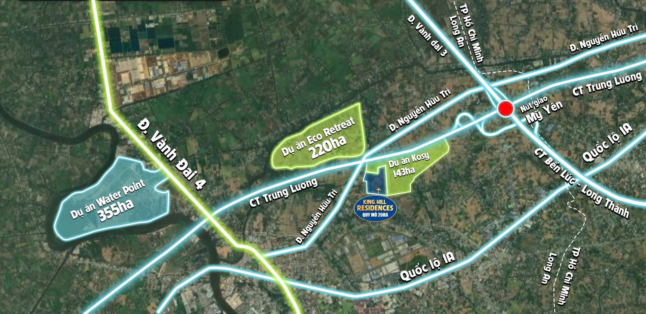 Và hàng loạt dự án đô thị “BIG SIZE” với quy mô trên 100ha đang được lập quy hoạch để biến Bến Lức thành Trung Tâm Kinh Tế – Tài Chính lớn nhất Tây Sài Gòn trong tương lai.